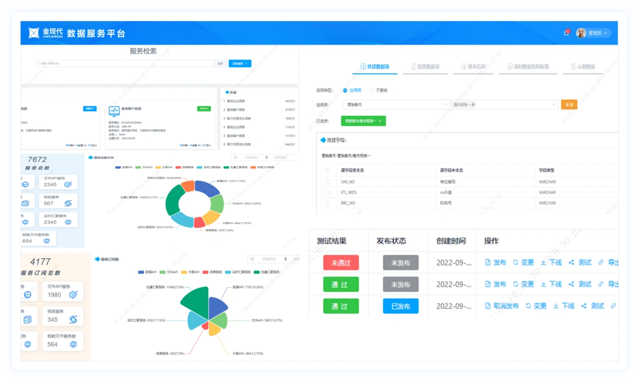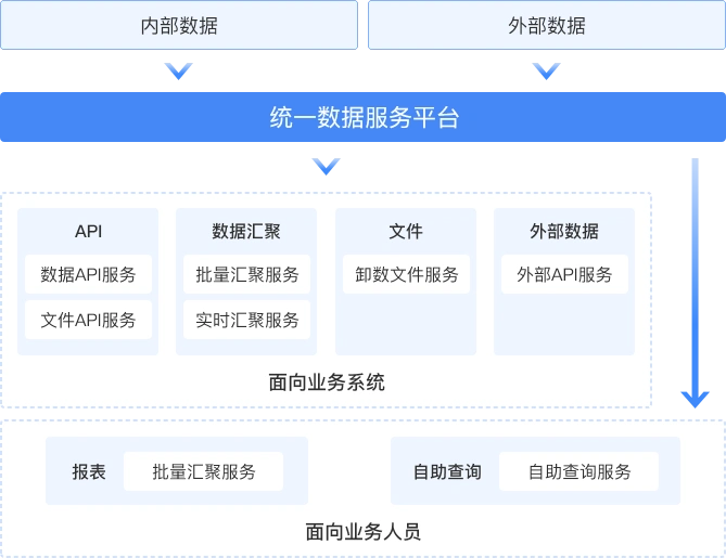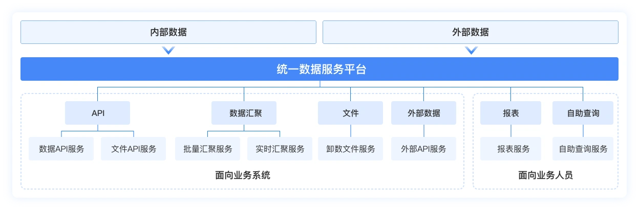 针对不同业务场景提供多种类型数据服务,如数据API、文件APL、报表服务、卸数文件服务等共8种服务