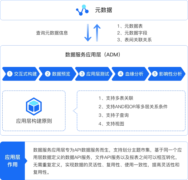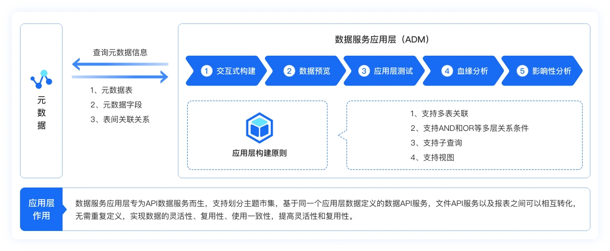 提供数据构建的能力,解决数据灵活性、复用性、使用一致性及查询性能问题:数据应用层ADM、Doris